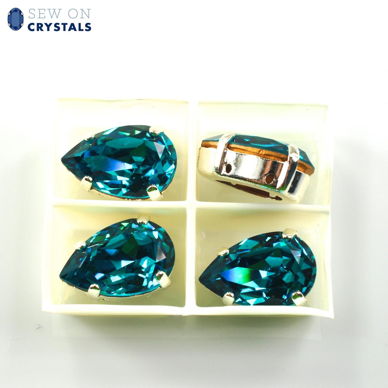 Blue Zircon 13x8.5mm Pear Sew On Crystals - 4 Pieces